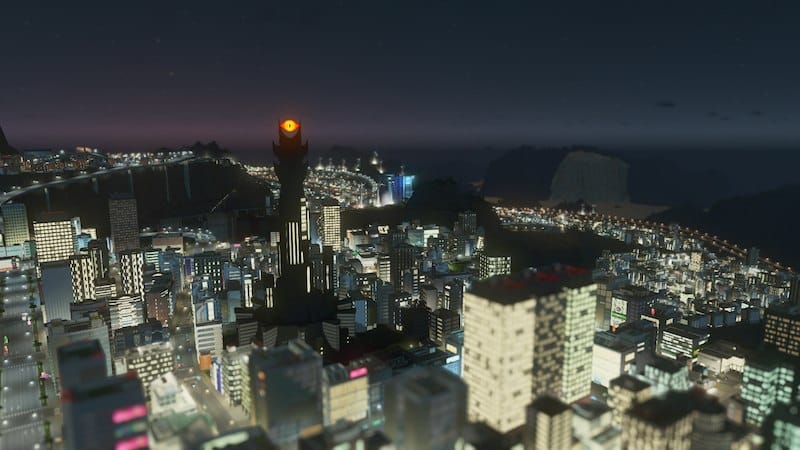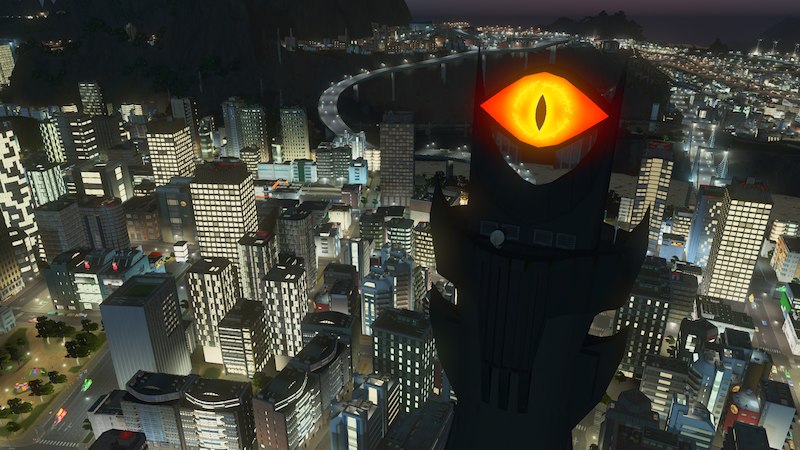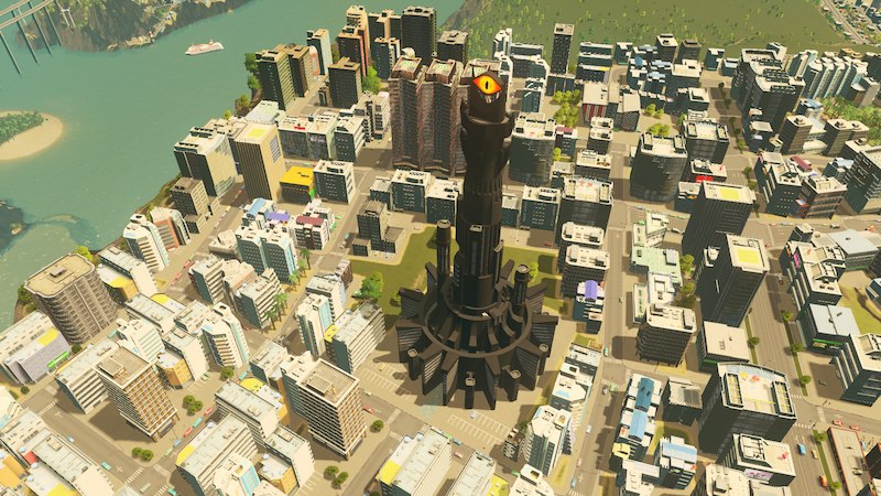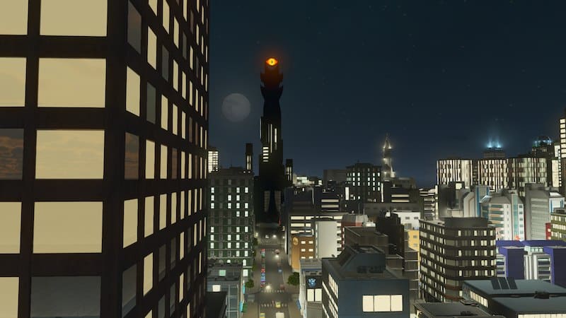 Barad-Dûr, the Tower of Sauron, Lugbúrz, the seat of power of the Dark Lord, has moved from Mordor to your city! This is the skyscraper version of the tower seen in the Lord of the Rings trilogy, given a somewhat more modern appearance to help it blend in to your city.