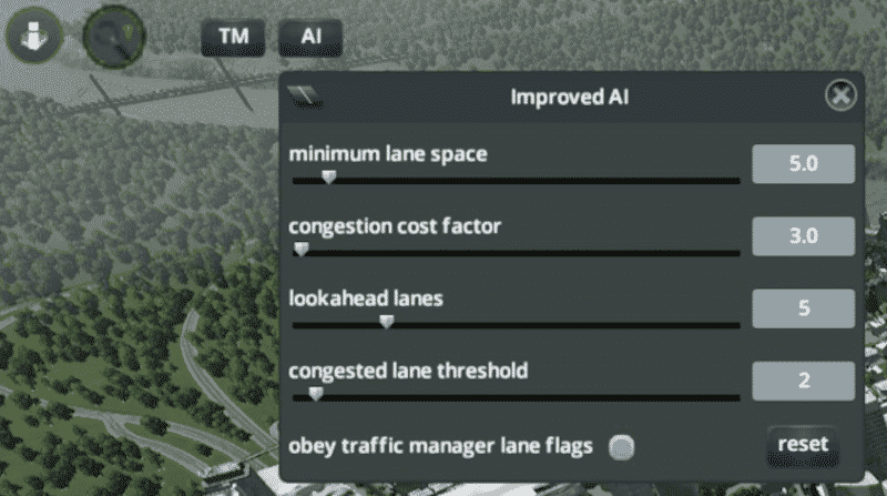 The number of lookahead lanes and the congested lane threshold control the depth of the search for the optimal path. Increasing the former while decreasing the latter will trigger more frequent searches and generally result in a better path, at the cost of performance. Refer to the discussions section for a more detailed explanation. My machine is a tad below the minimum requirements to play the game, so I had to tweak these values accordingly. Thus, for a low-end machine, I recommend setting the number of lookahead lanes to 3 and the congested lane threshold to 2. With these values, a city of around 100k population is playable with no noticeable loss of performance and excellent traffic flow.