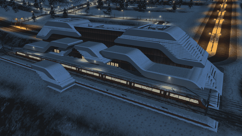 Cet asset est une déclinaison en “Gare” du batiment “Pierres Vives” (création de l’architecte Zaha Hadid)