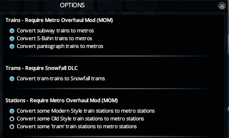 This mod is really helpful for users of upcoming Metro Overhaul Mod (MOM) (currently, you can access somewhat old alpha version on this @Lazarus*Man’s Simtropolis thread[community.simtropolis.com]). With this mod you will be able to automatically convert existing ‘metro’-train and ‘tram’-train stations into metro stations and existing ‘metro’-trains into metro trains without content creators remaking their assets.