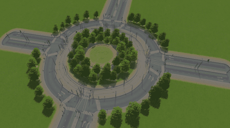 This roundabout has a two lane road and a 2 lane tram track. Through this roundabout, fewer filles occur. Because the tramway is not on the road.