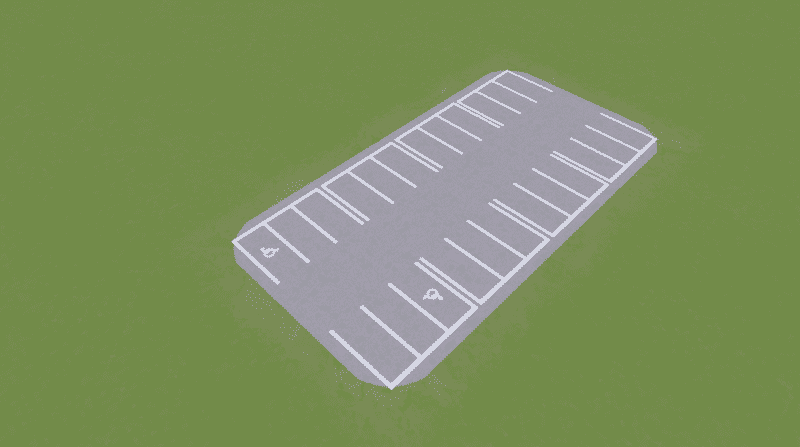 A simple 2×4 parking lot, which works very well with the Transit Terminal. Contains 24 usable parking spots. Cost is 50/10