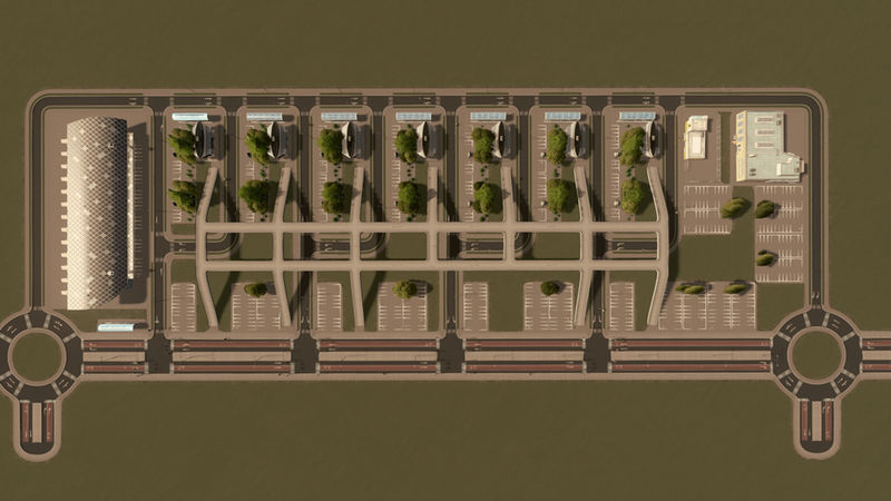 This is just the Transport Hub (Metro-Bus) updated for AD (upgrade six lane roads to four lane roads w/ bus + taxi lanes). In this asset you can place the regional bus station, 7 metro stations, 1 or 2 bus depots and 1 taxi depot. I made the roundabouts with regular 2 lane one way roads instead of 3 lane one way roads because I’m using TAM Beta.