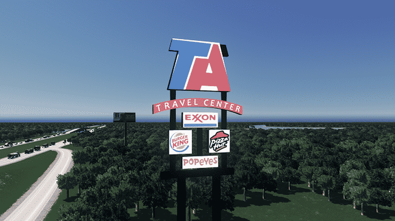 A massive sign for the chain of American travel centers, Travel Centers of America .