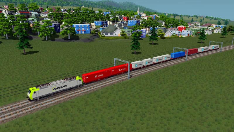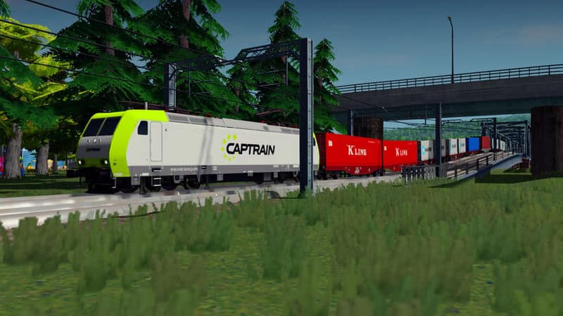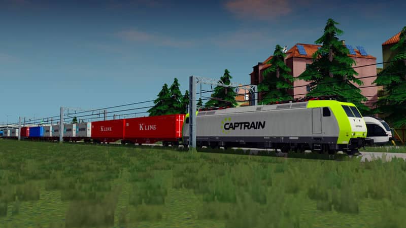 CAPTRAIN 185 Electric Locomotive and Container freight wagon.