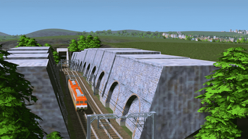 Grâce au mod RoadAnarchy, vous pouvez placer des murs le long de de la route/rails. Pour l’instant, ne vous préoccupez pas de la hauteur des murs. Lorsque vous avez fini, utilisez le 2ème outil du mod TerraformTool (en partant de la gauche dans la liste) pour déplacer vers le haut ou vers la bas le mur pour le meilleur rendu.