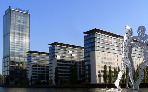 The Treptowers are an office complex on the Spree, in southeast Berlin, that were erected in 1998.