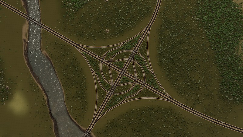 This interchange is very large, as it’s designed for aesthetic purposes. Feel free to use it in rural areas of your city!