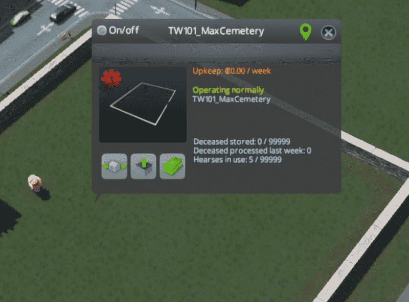 Provide 99999 capacity cemetery wich can effect full map and 99999 hearses without any costs and pollution.