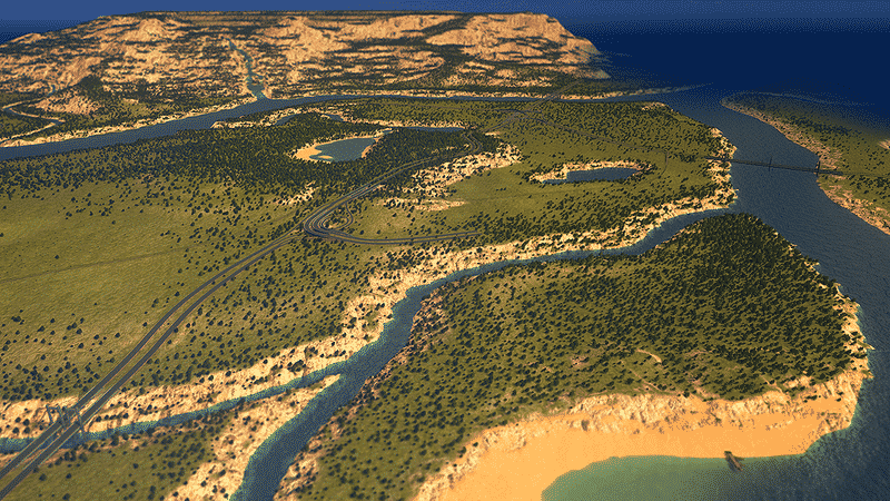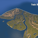 Nestled between two mountains in the Golden Cliffs Region, Twin River Valley provides an excellent foundation to build a city on. With two rivers to the north and south, and the ocean to the west, the main island provides ample space to build, without sacrificing the natural beauty of forests, lakes, and small river canyons.