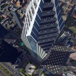 The building is attached to One Prudential Plaza (formerly known as the Prudential Building). Without its spire, the building’s height is still slightly greater than that of One Prudential Plaza’s pinnacle.