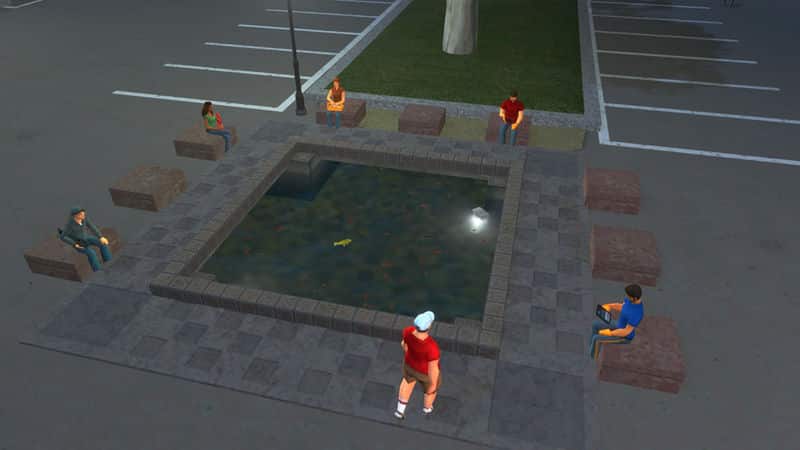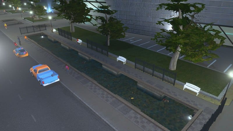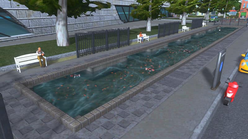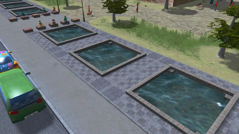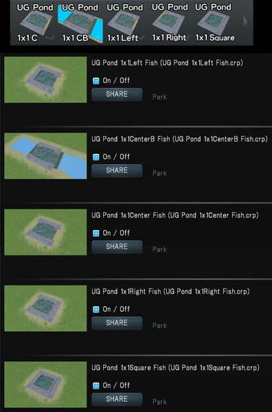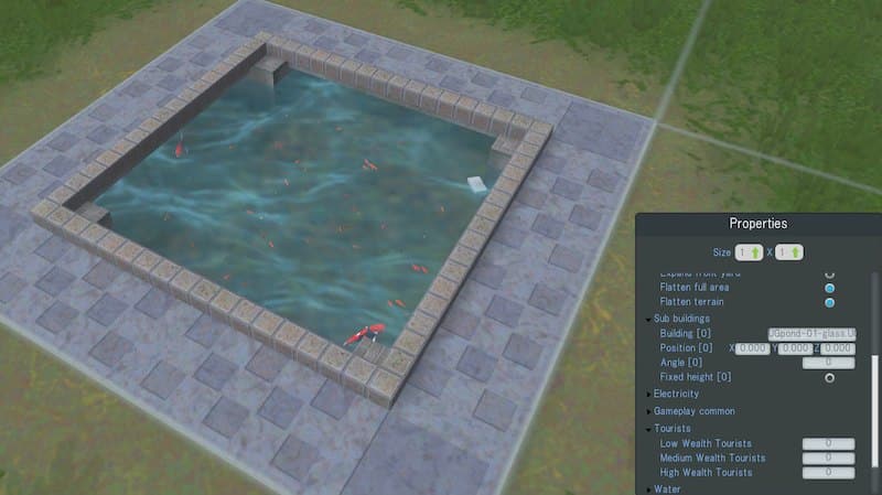 鯉が泳ぐ掘り下げ式の池です。5つの1×1セルサイズの公園がパックされています。