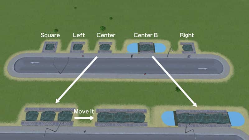 CenterBは幅が3ありますが、1×1の本体の両脇の地面を1セルずつ穴を開けたものになっています。ただしこれを重ねて設置するにはAnarchy MODが必要になります。
