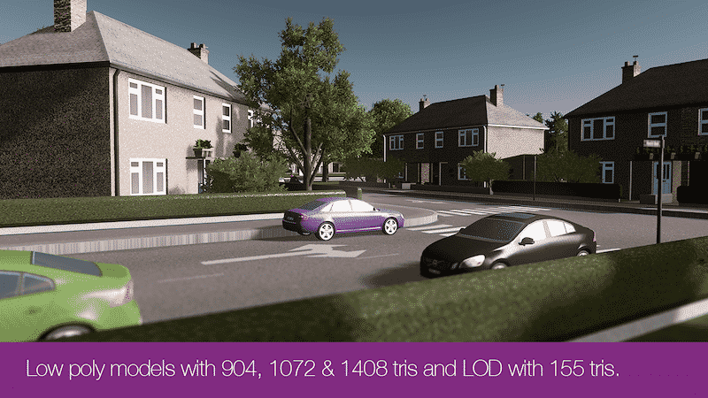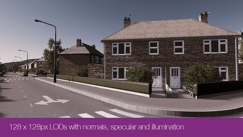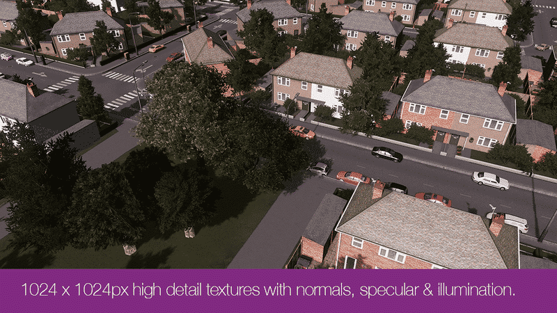 The model is based on my previously realised semi-detached house and has been reworked with new higher detail textures and gardens which require no additional prop assets.