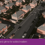 The plot depth is 3×3 (including garden) so the suggested distance between roads is 8 units leaving 6 units for back-to-back spawning which looks more realistic. If you make it 9 units a central path works well. The corner houses will help to give your districts a more consistent layout.