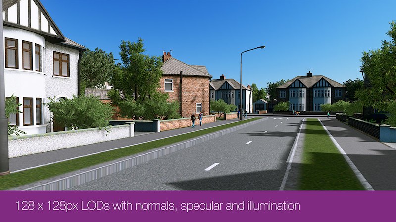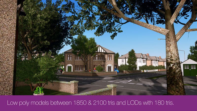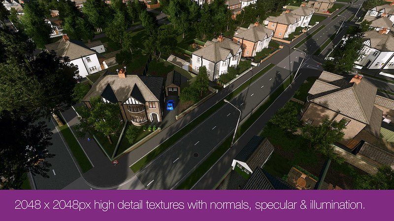 The model is based on my previously realised semi-detached house and has been reworked with new higher detail textures and gardens which require no additional prop assets.