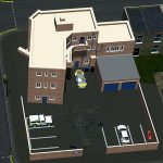 In order to allow vehicles to appear to enter and leave the station realistically the model is provided so the rear of the building with the yard entrance is really the front of the object and must connect to a road.