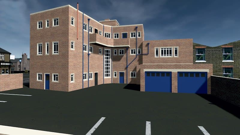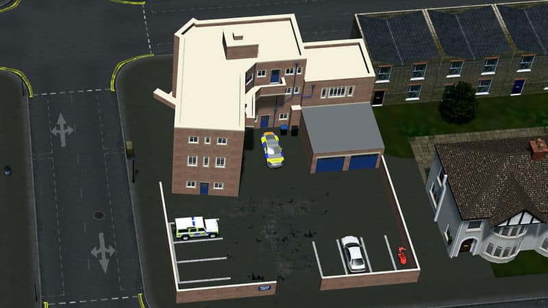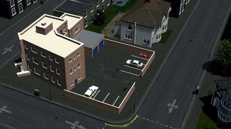 In order to allow vehicles to appear to enter and leave the station realistically the model is provided so the rear of the building with the yard entrance is really the front of the object and must connect to a road.