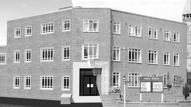 This model represents a police station typical of the type built in many English towns during the late 1940s and the 1950s. At that time such buildings provided nearly all of the capability for the local police sub-division. This would usually have covered a small urban area, surrounding countryside and villages. The building would therefore have included: