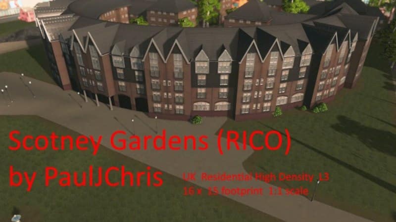 This is a large residential high density apartment complex modelled by myself based upon a real world building located in Maidstone UK. Originally modelled for Cities XL, now converted for Cities: Skylines. 1st of a series of conversions of my back catalogue of assets which can be seen here Useful for adding high density and a bit of variety to your town centres.