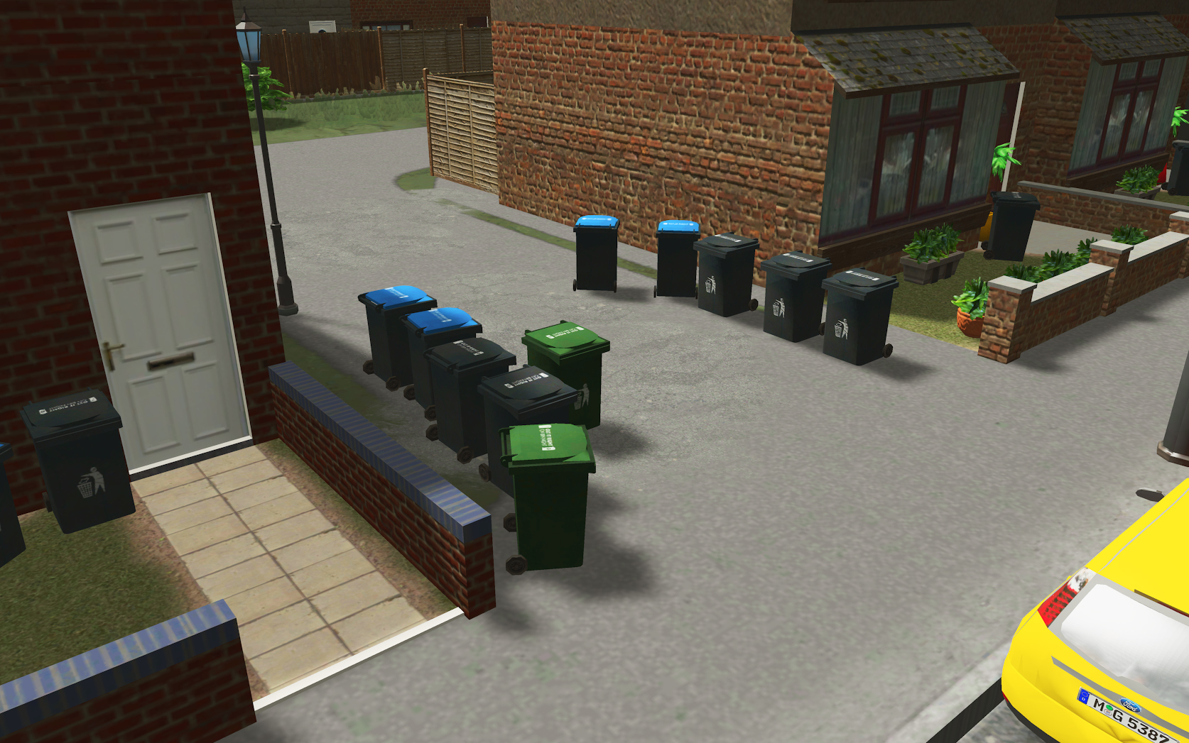 This wheelie bin is a decrotive prop and is best used with the More Beautification Mod, which allows you to place props in game.