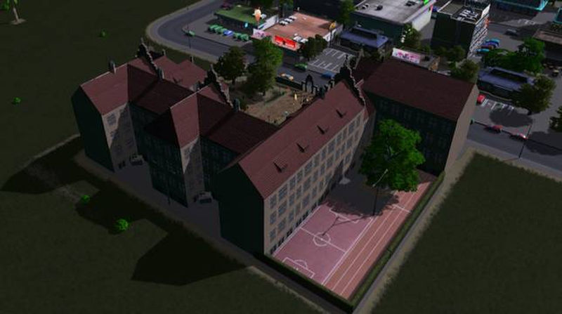 This is the ultimate high school for a big city with lots of cash to burn. It has double the capacity and a much higher education level than the default high school. The initial construction cost isn’t very high since it doesn’t occupy much land. The maintenance cost is extremely high, but the school employs a lot of educated workers that will benefit your city in other ways. The school also has a very high radius of influence which will raise land values in your city significantly.