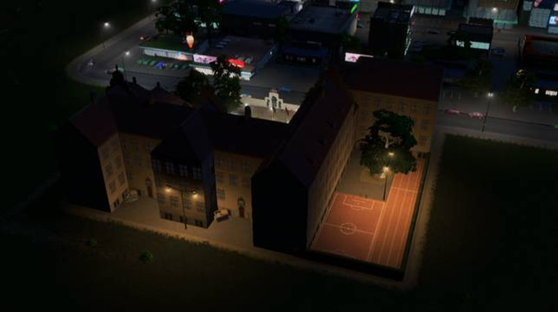 This is the ultimate high school for a big city with lots of cash to burn. It has double the capacity and a much higher education level than the default high school. The initial construction cost isn’t very high since it doesn’t occupy much land. The maintenance cost is extremely high, but the school employs a lot of educated workers that will benefit your city in other ways. The school also has a very high radius of influence which will raise land values in your city significantly.