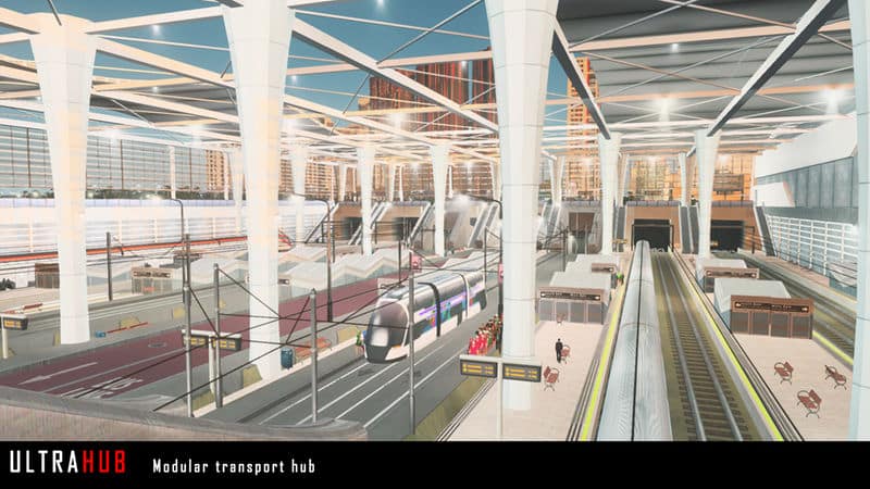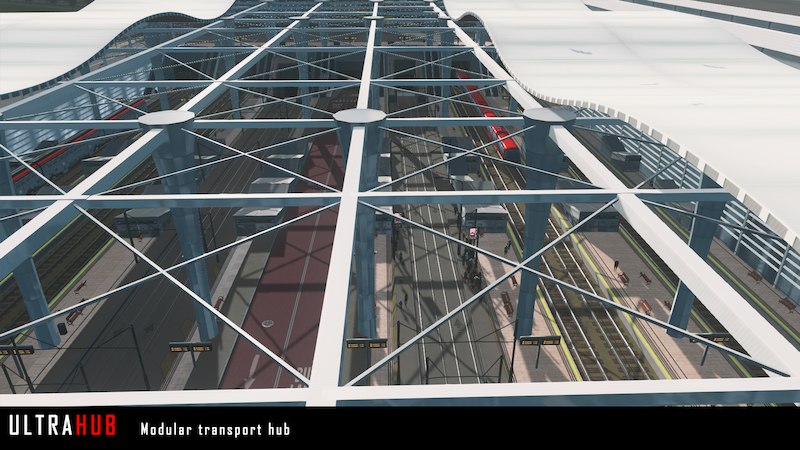 ULTRAHUB is the fully modular transport hub which combines all available and possible networks under one single project. It aims to deliver different variations (both in style and network) to the end user as modules and let the user create its own unique station.