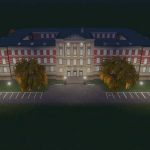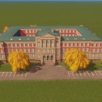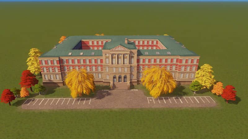 This is just the standard university building, replanted with fall trees, more green space and tasteful nighttime walkway lighting. Same stats as vanilla