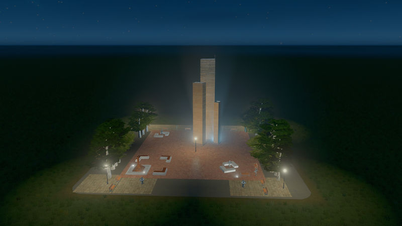 The 4th installment of my custom designed URBAN PARK PACK – this plaza that lays 5×5 and is fully ploppable was inspired by the brick layers of Cim Nation. Dubbed, “red square” for the sunbaked red bricks they make, this pavillion and plaza is a perfect addition to a city center to remember the brick layers and relax in the pillars that are the centerpiece of the plaza.