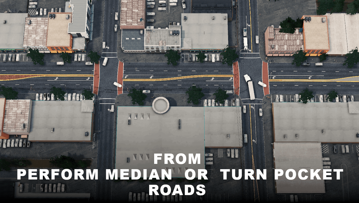 continuous median (for specific roads)
