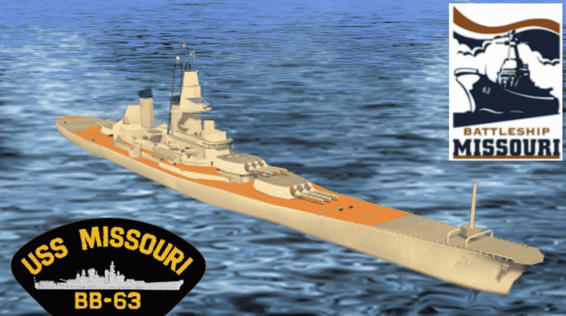 USS Missouri (BB-63) (“Mighty Mo” or “Big Mo”) is a United States Navy Iowa-class battleship and was the third ship of the U.S. Navy to be named in honor of the U.S. state of Missouri. Missouri was the last battleship commissioned by the United States and was best remembered as the site of the surrender of the Empire of Japan which ended World War II.