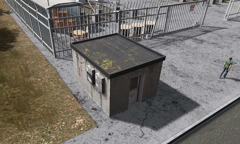 A small, white brick utility structure as a prop. Could be used in industrial areas, as a gas or electric substation in residential neighbourhoods, kitbashing as an entrance or shed for larger structures, etc…