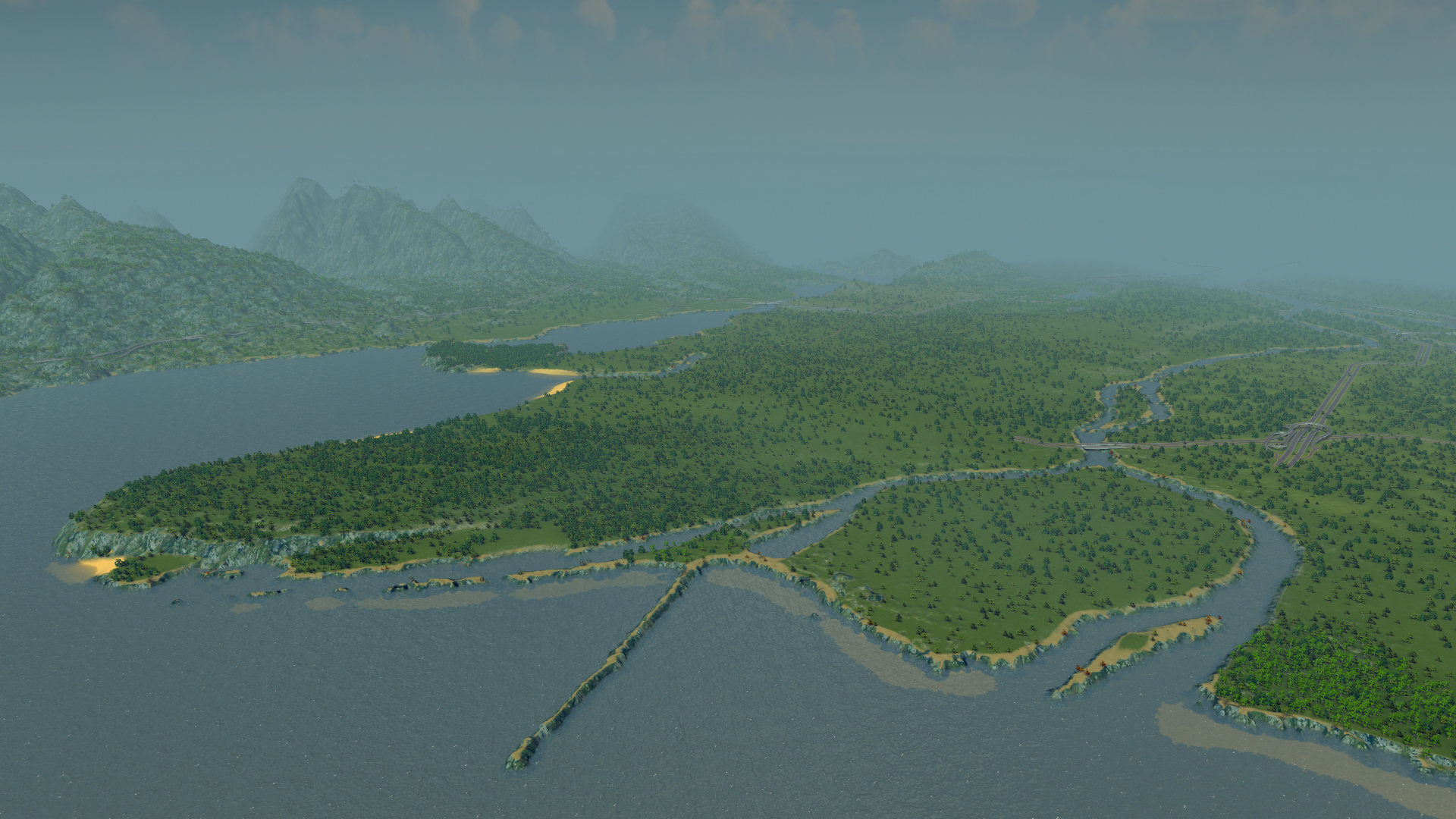 Everything (rivers, highways, trains, etc) on the map is as accurate as I could make it while keeping the map playable. It took some time editing it by freehand after importing the heightmap, since the heightmaps don’t work well for low elevation areas. I have added resources to the map where they would usually be found in reality, except for oil and ore which were added in what would be likely locations. Ships run along the coast, as well as into the Burrard Inlet and Boundary Bay for better gameplay. Air traffic takes a path across where YVR would be placed. Animal spawn locations have been set at the base of the mountains.