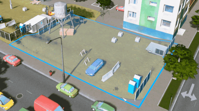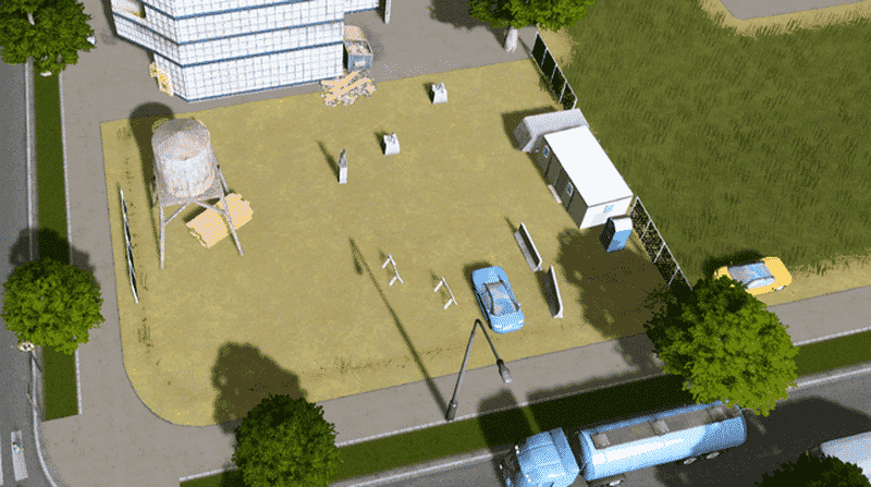 This filler lot grows as a construction site on 4×1, 4×2,4×3, and 4×4 Low Density Commercial lots. Commercial workers will be employed at the construction site. When the lot upgrades to the next level it will be replaced by a Level 3 building. There is no Level 3 construction site so when you get to level 3 buildings this will no longer appear.