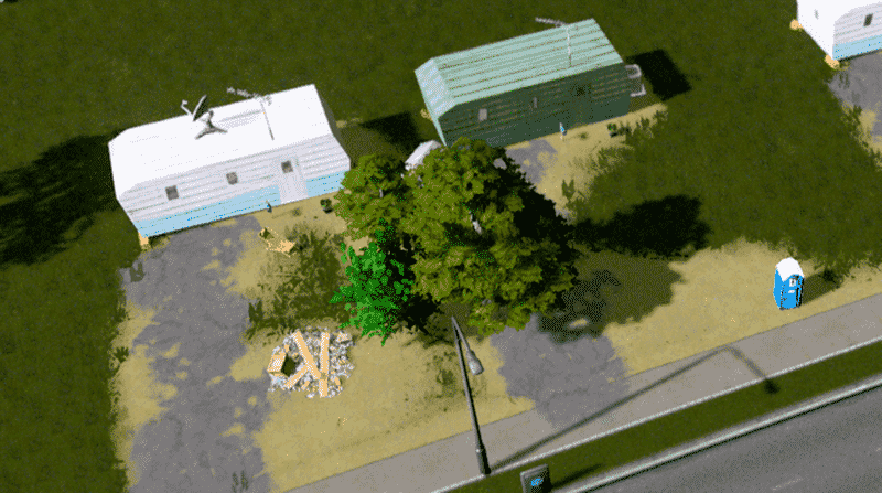 The buildings in this collection use up to 64 props and trees. Each time the asset grows, approximately 20-30 of these props/trees will randomly grow with the building, creating a unique look each time it grows