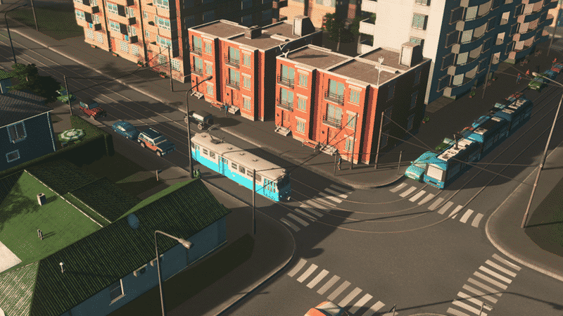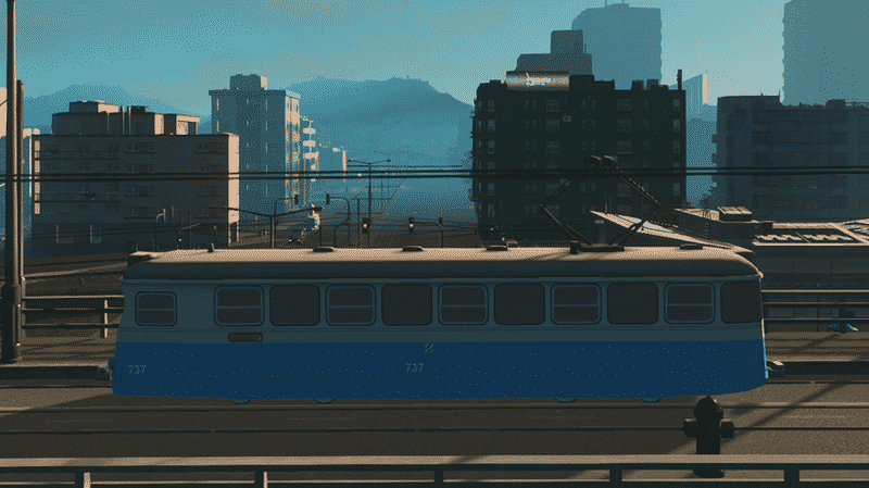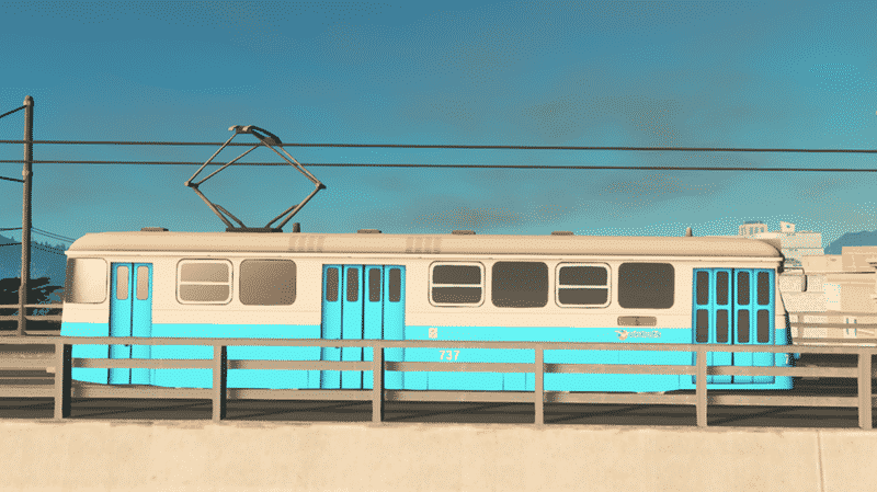 The blue colored parts of the tram are line colored. Use a light blue line color to get the original real world livery.