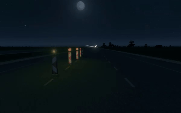 – 5x Leitbaken, mit Blinklichtern (Höhe: 1.65m, Breite: 30cm, Abstände: 3.5m each)