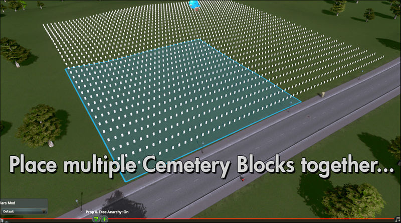 – Use More Beautification and Prop Anarchy to incorporate trees and grave props within the cemetery