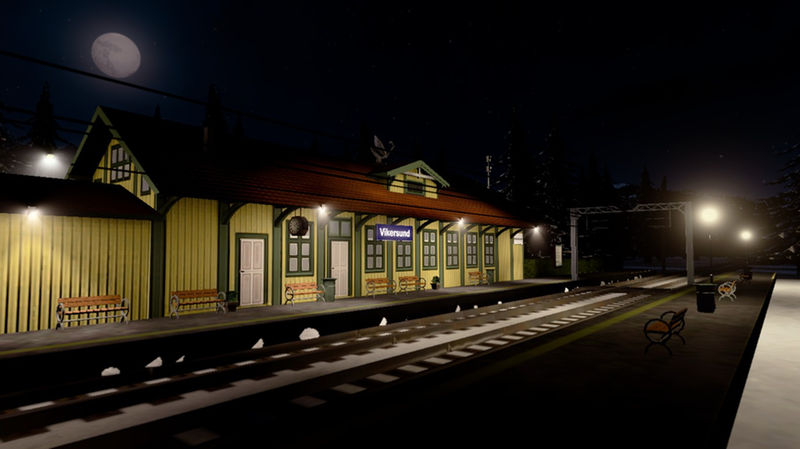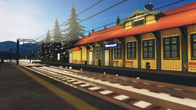 Vikersund station located at the village of Vikersund in Modum, Norway, on the Randsfjorden Line. It is a small station with slightly reduced stats from default station.