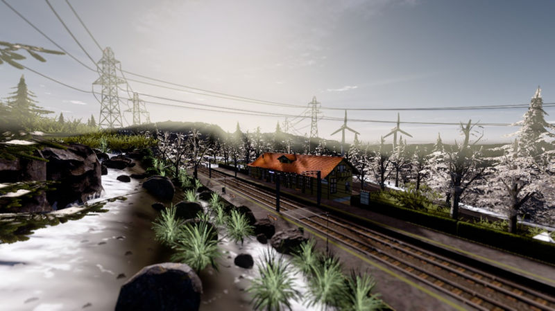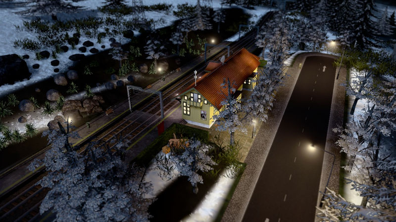 I didnt add any tree because I was planning to use it with winter map. Its size 8×4 so you can add trees around building next to track after place it in game. (like in images)
