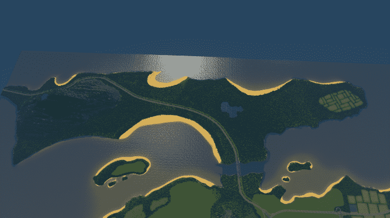 Changelog: added roads, islands, bridges, mountains, lakes, ponds, railway, rerouted ships, airplanes.
