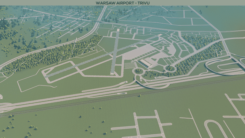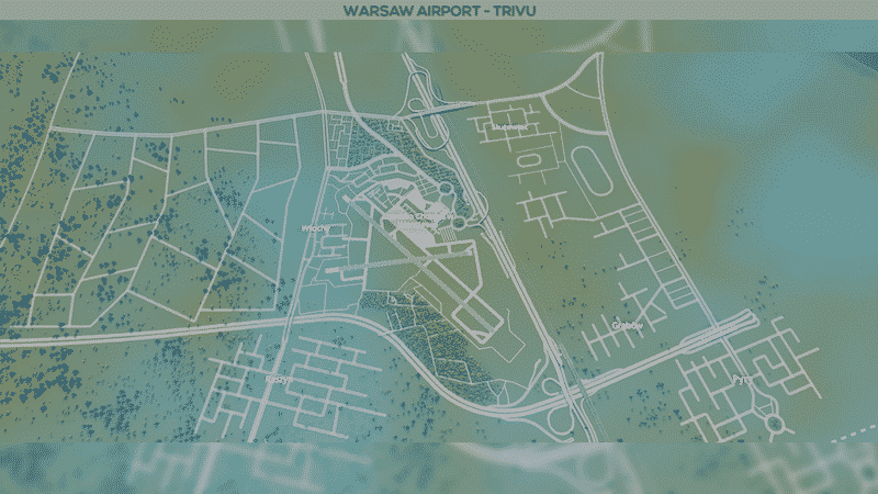 INTERNATIONAL WARSAW/WARSZAWA/WARSCHAU AIRPORT + NEARBY STREETSYSTEM + INTERCHANGES | BY TRIVU