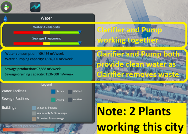 The pumped water and clarified water count towards your cities available water supply… twice the water… no water pollution… no cheating. Now that is the beauty in the design.