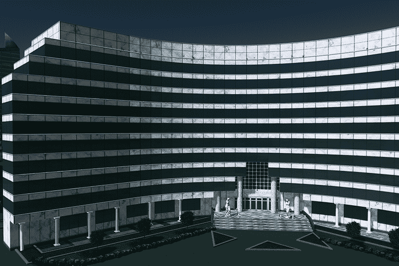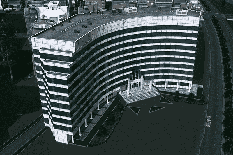 A modern mid-rise office building with 65 workplaces with the RICO mod.