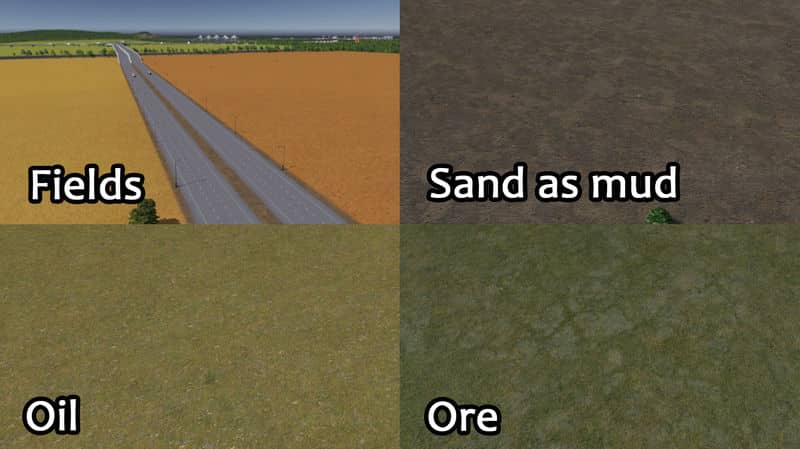 This theme came about as I wanted to make some swampy areas and wanted a wet mud look. It’s temperate and it rains a fair bit (gotta keep that mud wet). It’s got custom cliff, grass, oil, ore and pavement textures too.