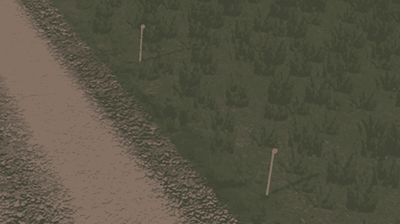 Green stake with white reflectors for marking edges of rural roads.