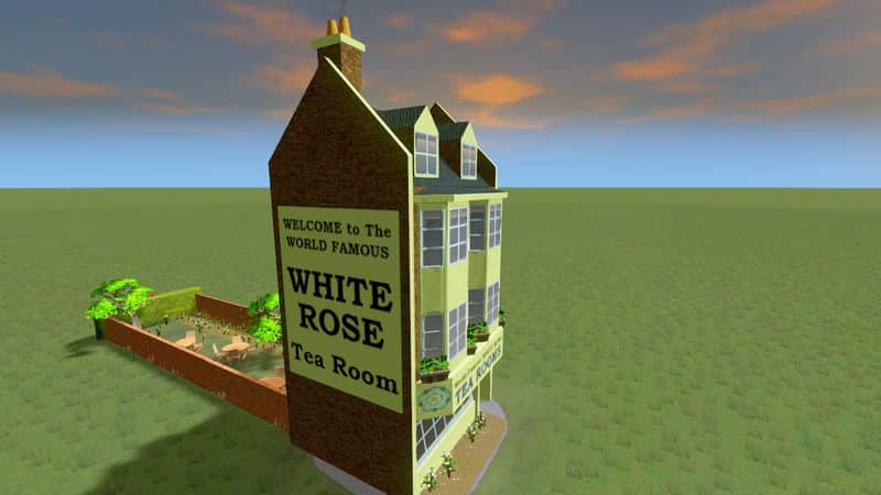 This lot uses a few more of my own, custom props – I think about half a dozen. But they’re all nice things, like a cute spotted kitty and an apple tree. For your trouble, you’ll be rewarded with a really beautiful, stylish lot to add some traditional English flair to your European city centres.