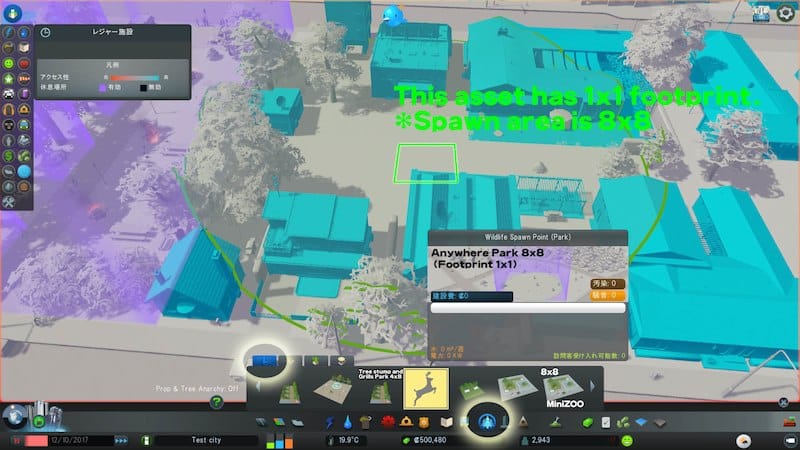 ところで試しに”Animal spawner”をSubBldとしてインポートした公園を作ってみたところ、セーブする事ができませんでした(セーブしてもファイルが作成されない)。何かゲーム仕様上の制約があるのかもしれません。