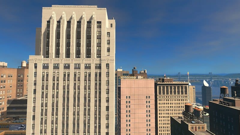 The building was inspired by American Stock Exchange Building in New York, NY. My city was getting a bit too brown so I wanted to make something brighter to lighten up my city…with glorious art deco building, of course!